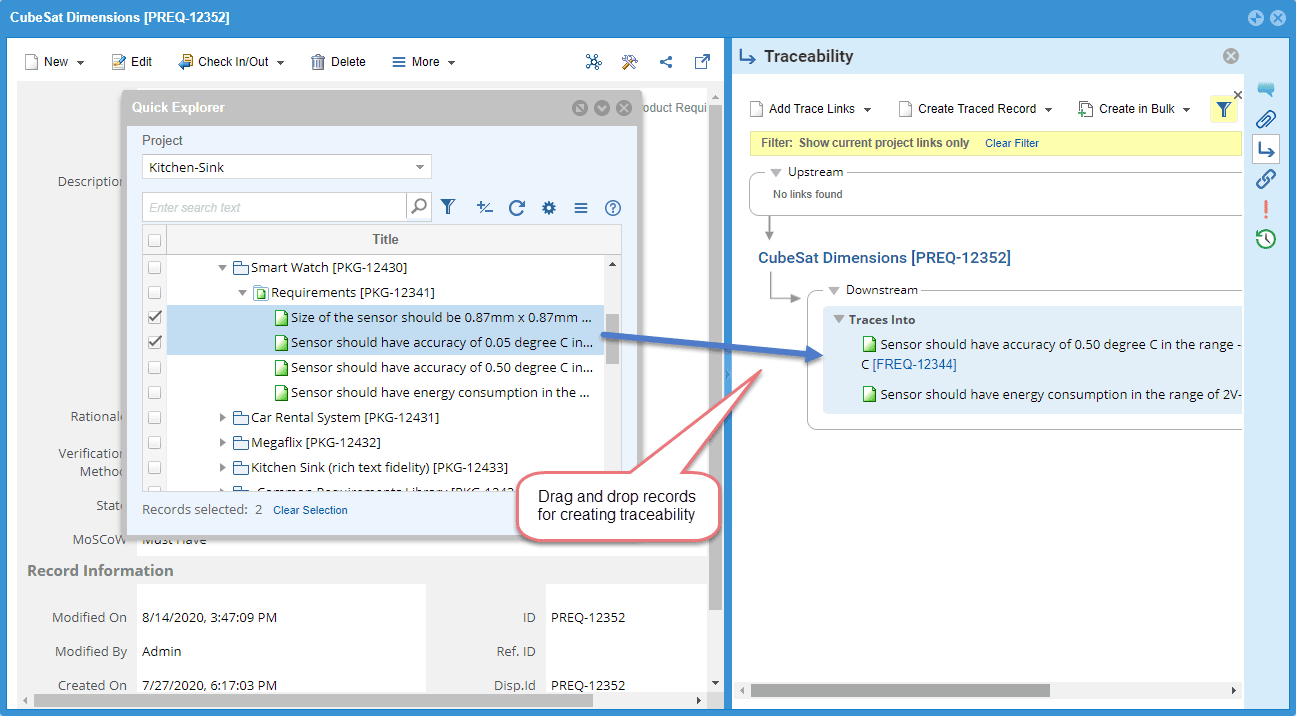 Creating Trace links is easy - just drag-and-drop!