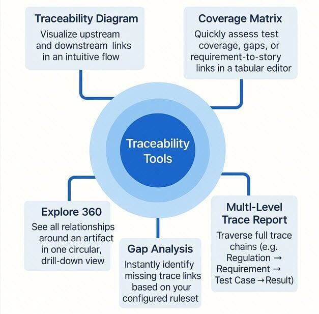 - Enforce trace link policies using project-specific Trace Rulesets