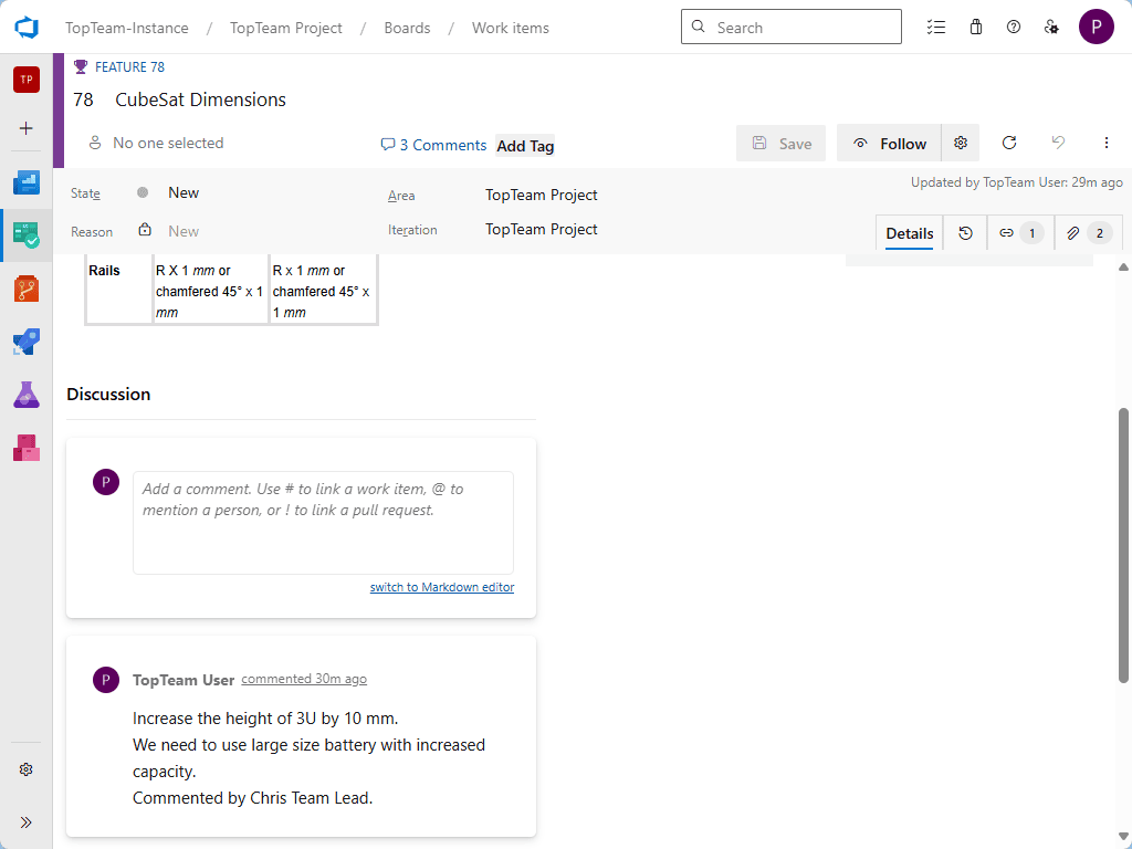 TopTeam Requirements for Azure DevOps